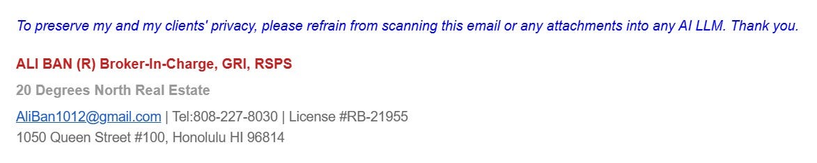 If you have received an email from my work email (AliBan1012@gmail.com) recently, you may have seen this message at the bottom: